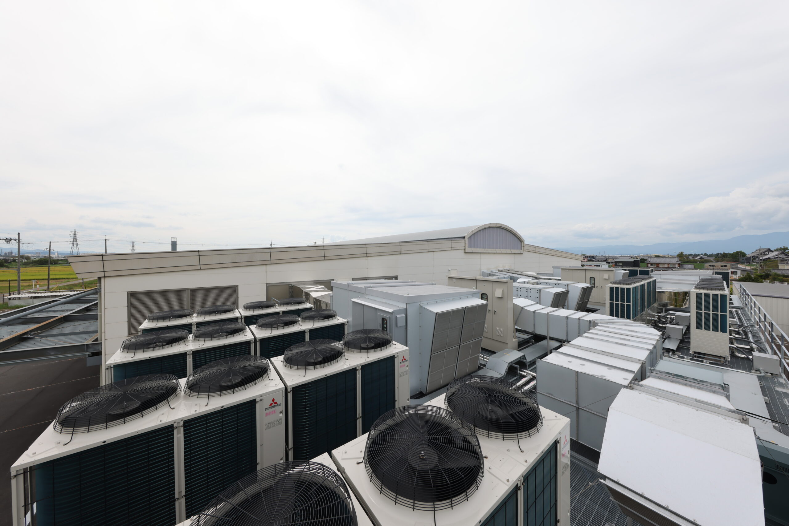 既存建物の制約の中で、 外部に更新設備用の大きな架台を設けました。